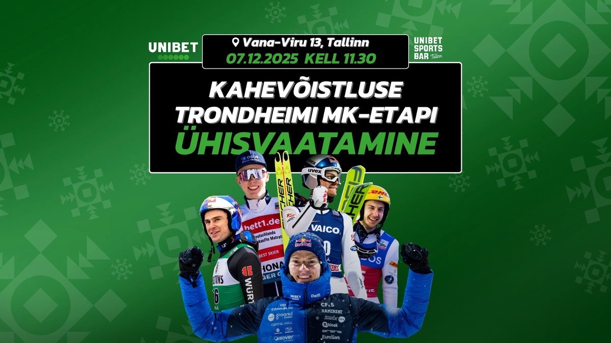 Eesti Suusaliit ja Unibet kutsuvad kõiki suusaspordi sõpru 7. detsembril kell 11.30 Unibet Sports Bari (Vana-Viru tn 13), et kaasa elada Norras Trondheimis toimuvale kahevõistluse maailmakarikaetapile.